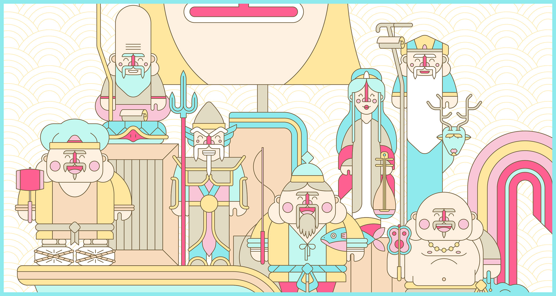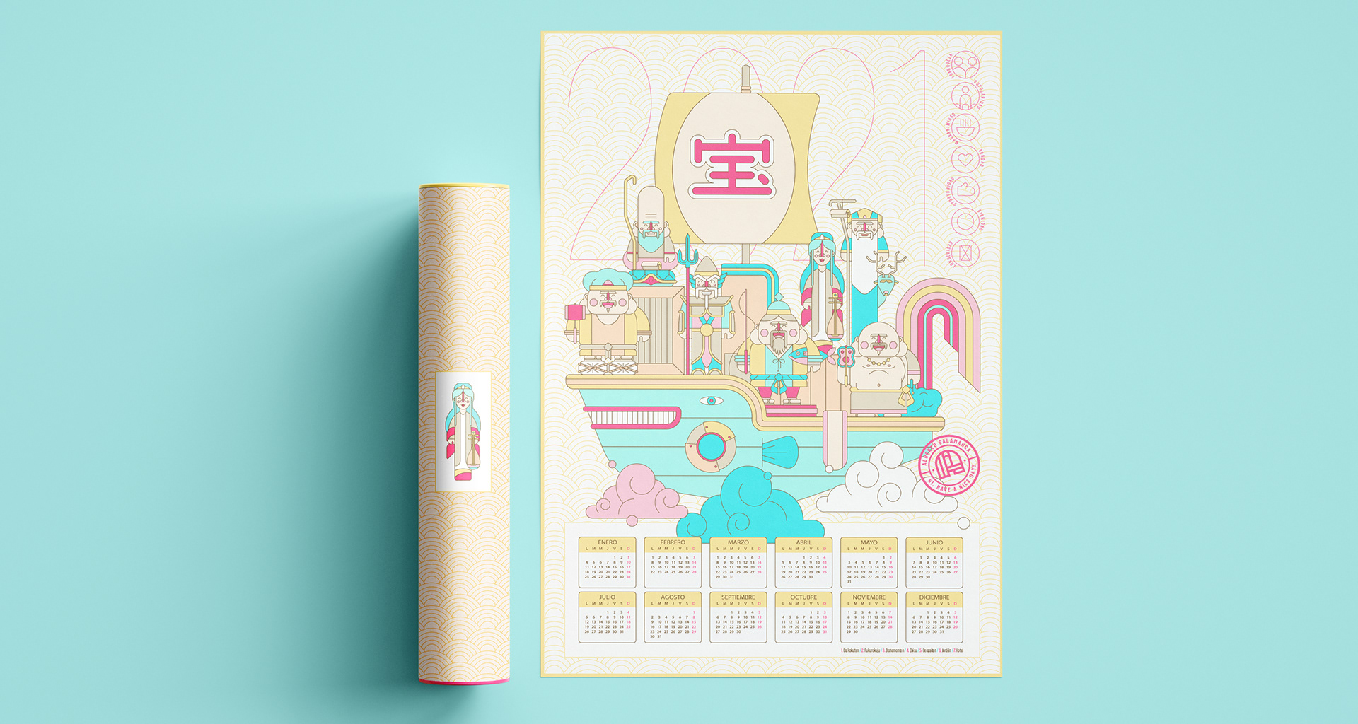 Proyecto personal de un calendario con los siete dioses de la fortuna japoneses.